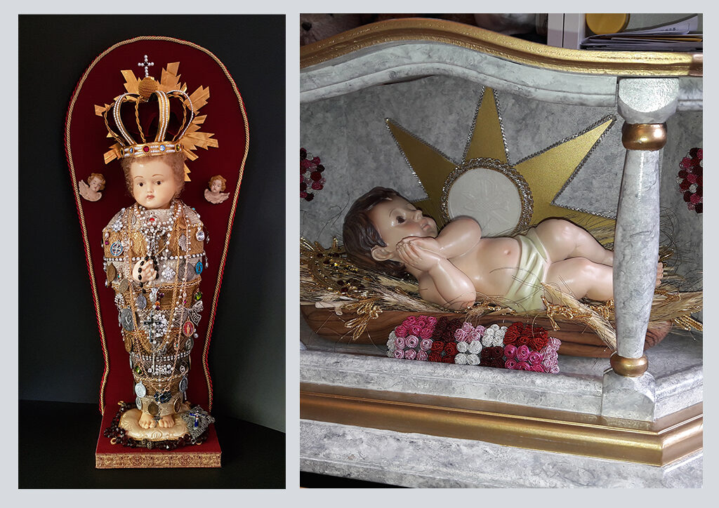 In der heurigen Sonderschau im Krippenmuseum Muri Gries stellen Johanna Straudi und Gerti Lechner von ihnen gefertigte Nachahmungen der wundertätigen Jesuskinder der noch wenigen verbliebenen Christkindl-Wallfahrten aus.